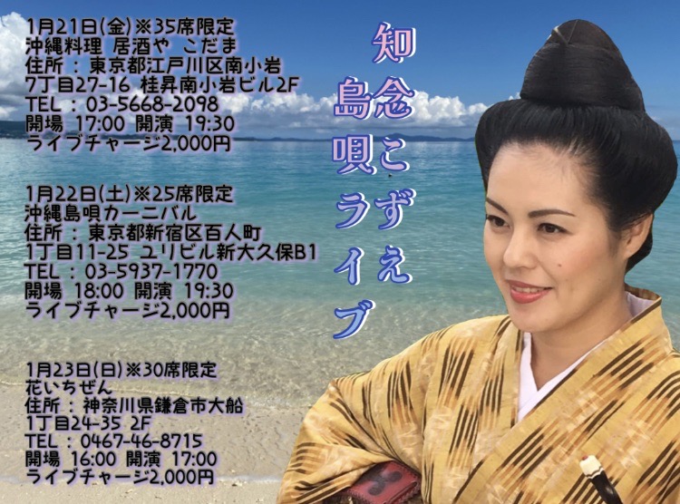 | 1/23 (日) | ☆知念こずえ 島唄ライブ *中止になりました |