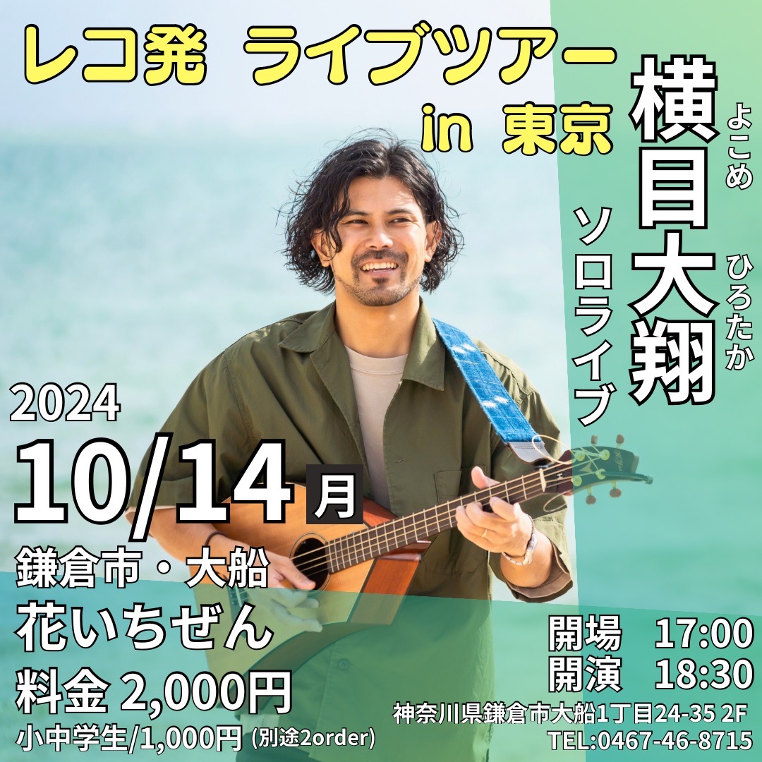 | 2024年10月14日(月) ☆横目 大翔ライブ ※予約受付中・残席わずか! | |