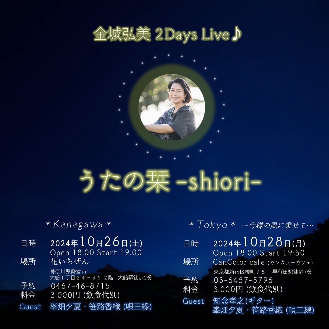| 2024年10月26日(土) ☆金城弘美ライブ ※満席(キャンセル待ち受付中) | |