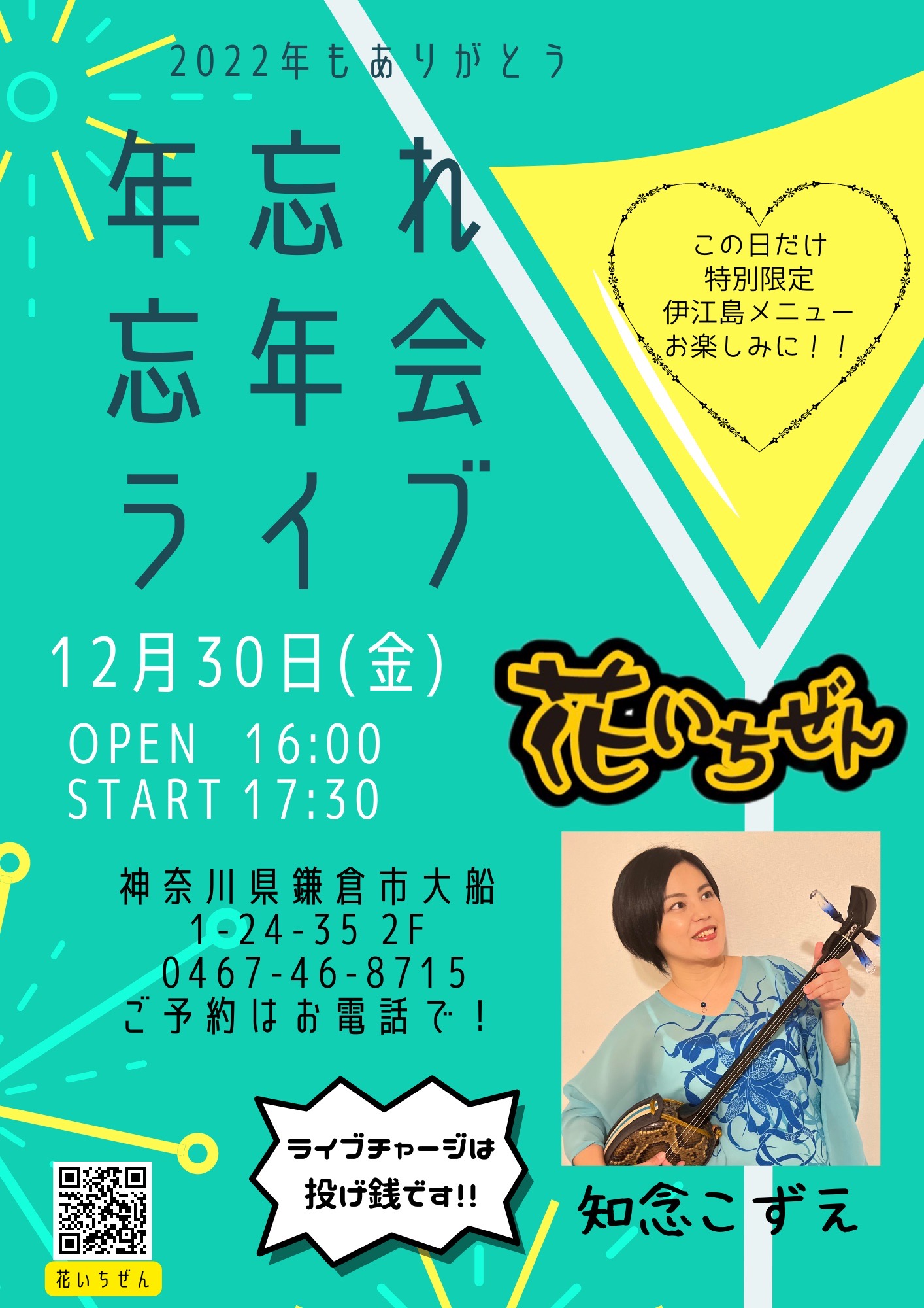 | 2022年12月30日(金) 知念こずえ 歳忘れ忘年会ライブ | |