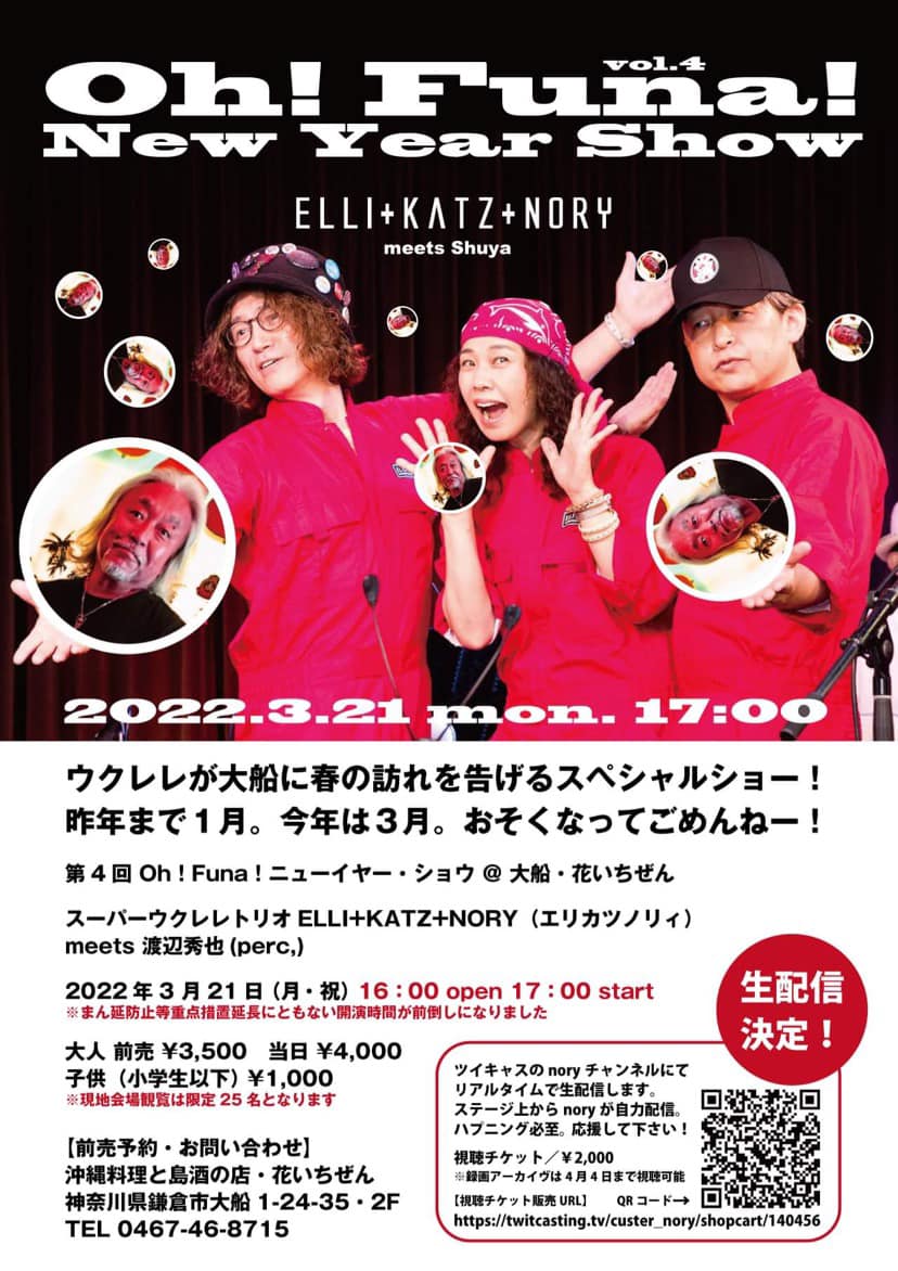 | 2022年3月21日(月) ☆ELLI+KATZ+NORY meets Shuya ライブ | |