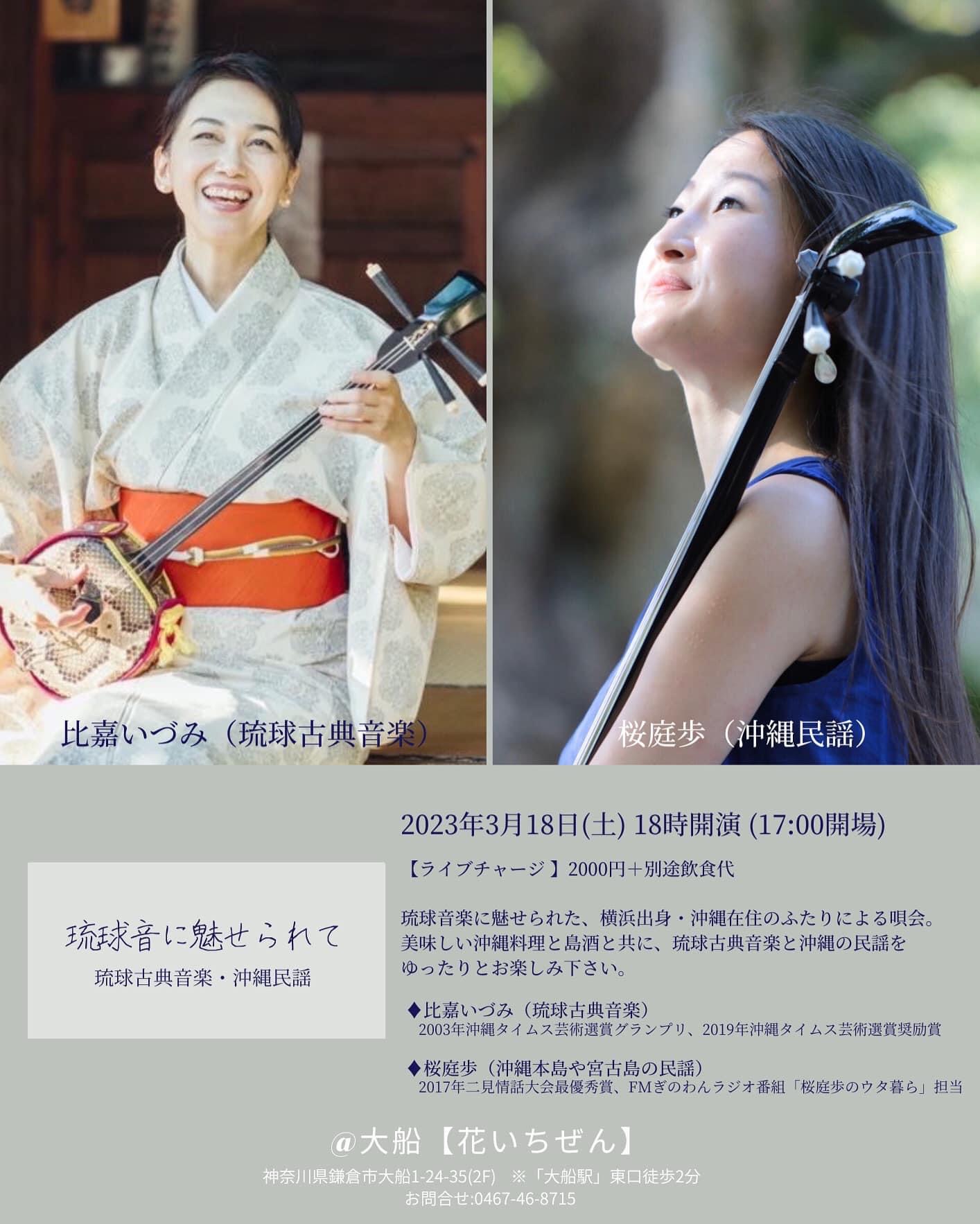 | 2023年3月18日(土) ⭐︎比嘉いづみ・桜庭歩 ライブ SOLD OUT!キャンセル待ちとなります | |