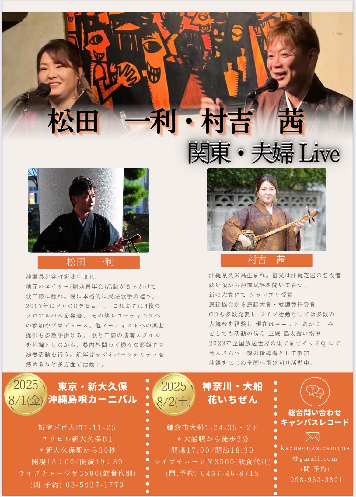 ☆松田一利・村吉茜 関東・夫婦Live ※満席(キャンセル待ち受付中)